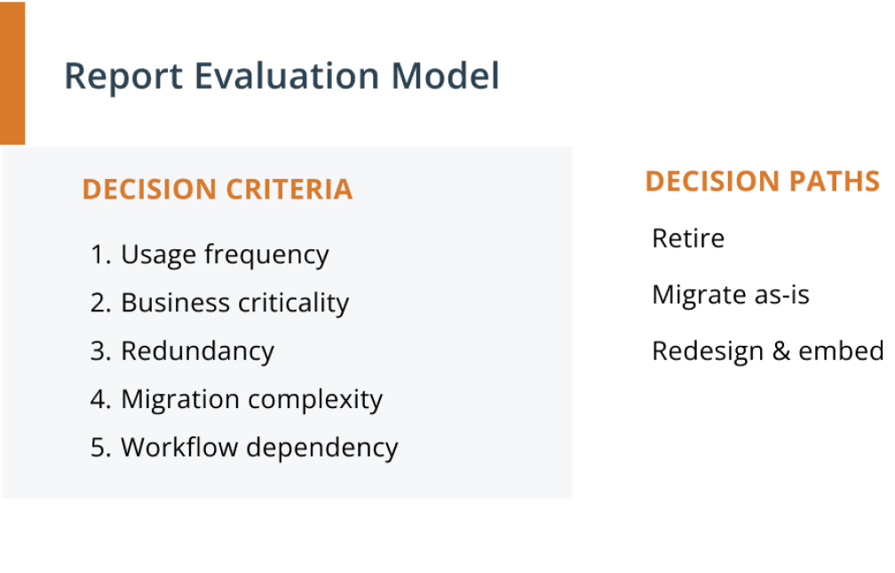(retire, migrate, redesign)Assessed usage, criticality, redundancy