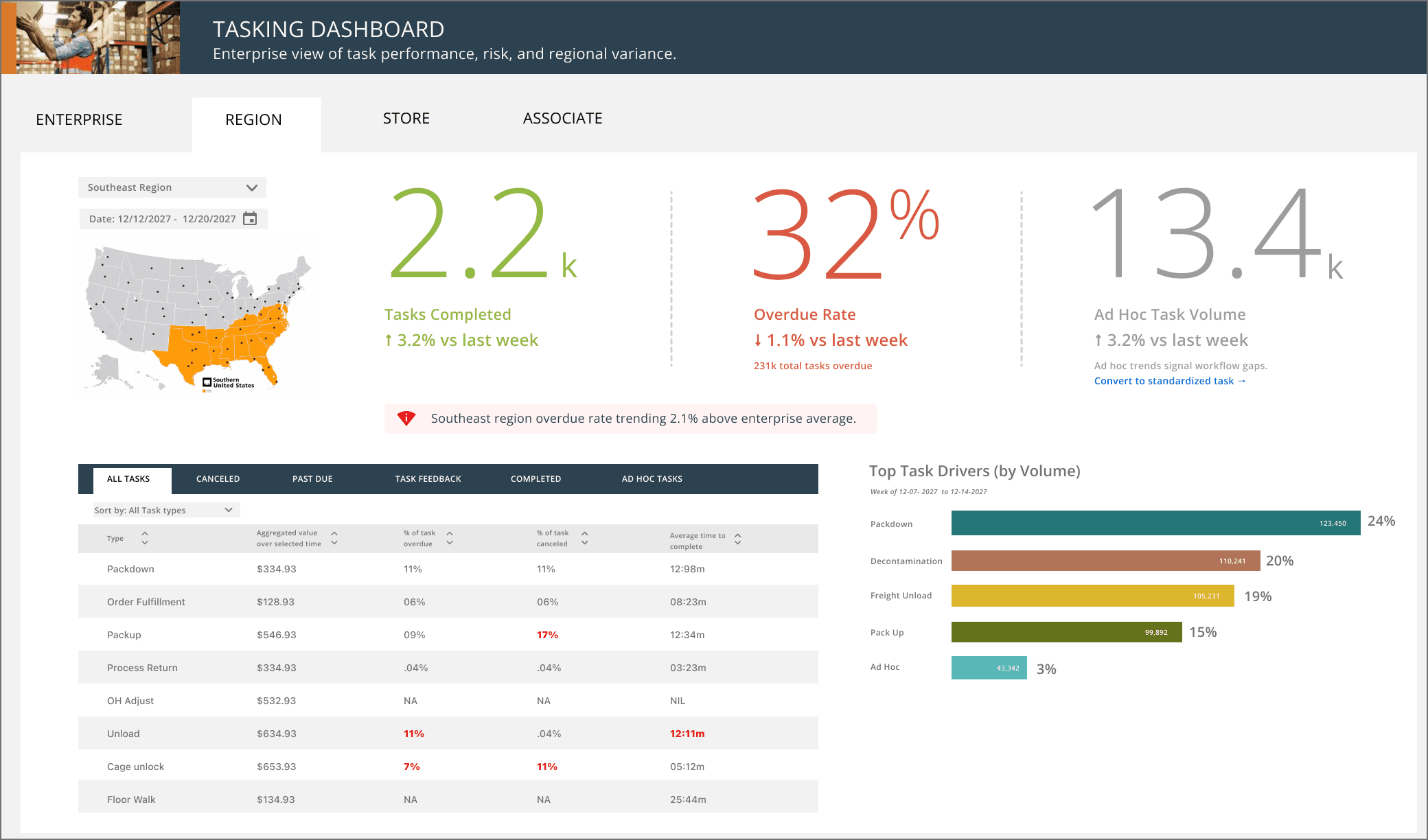Enterprise initiatives spanning API enablement, tasking platforms, and reporting modernization required aligning workflows across complex systems. I partnered with Product and Engineering to clarify requirements, streamline processes, and design the workflows and interfaces that translated operational complexity into build-ready solutions.