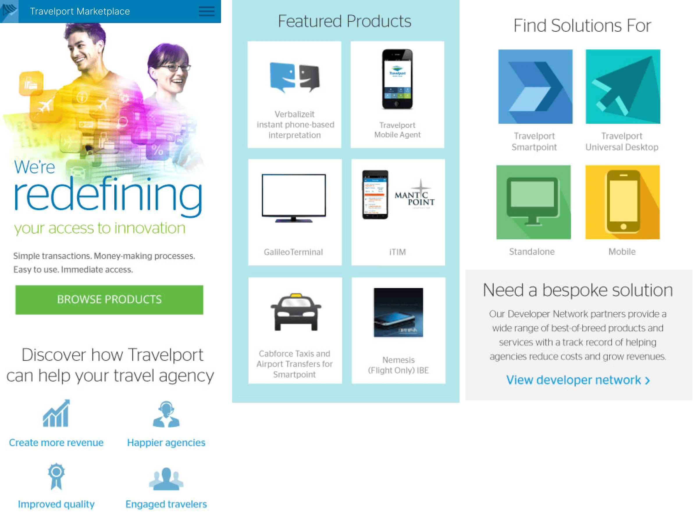 I led the design and experience strategy for Travelport Marketplace, an e-commerce platform that enables travel agencies to discover and adopt technology products built on the Travelport platform. Working with product and engineering teams, I designed key marketplace experiences including product browsing, product detail pages, and developer listings.