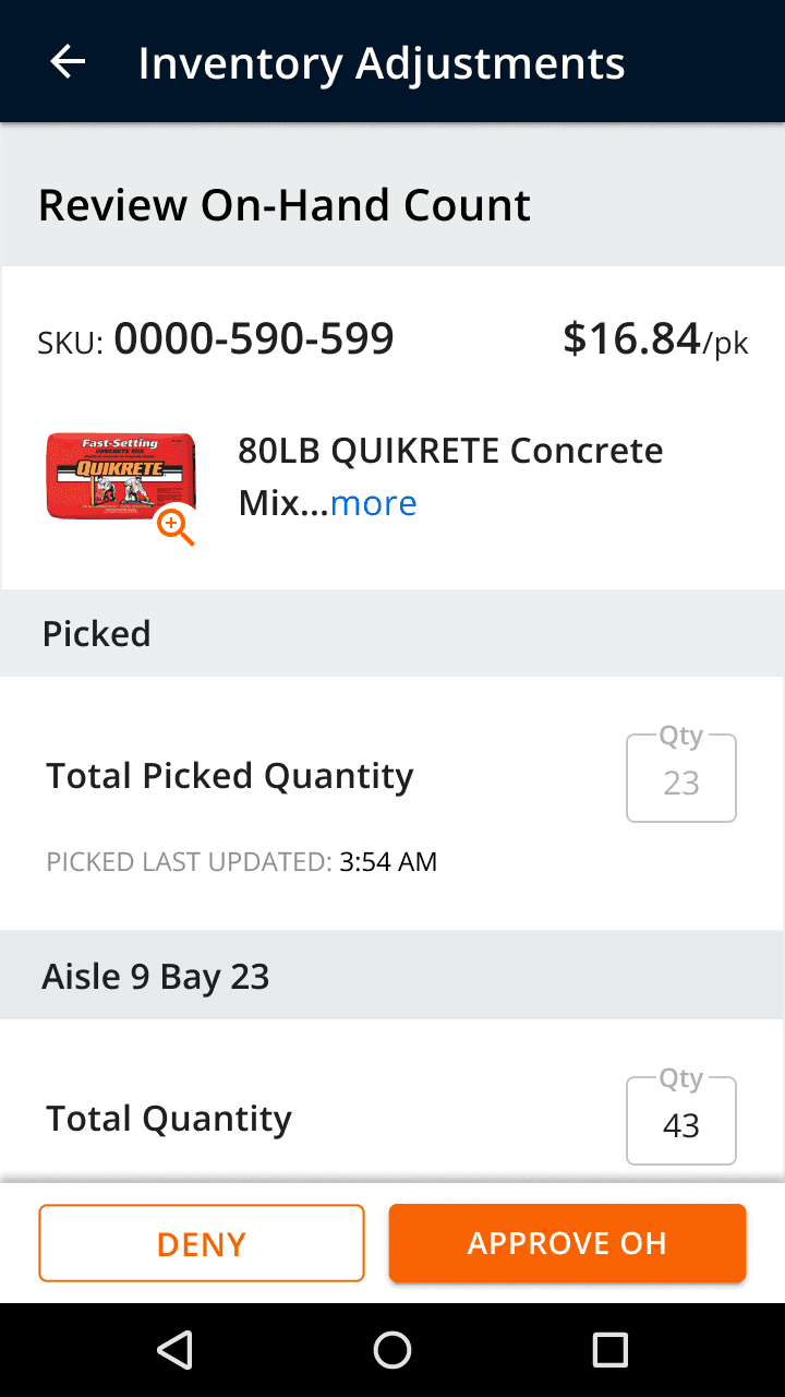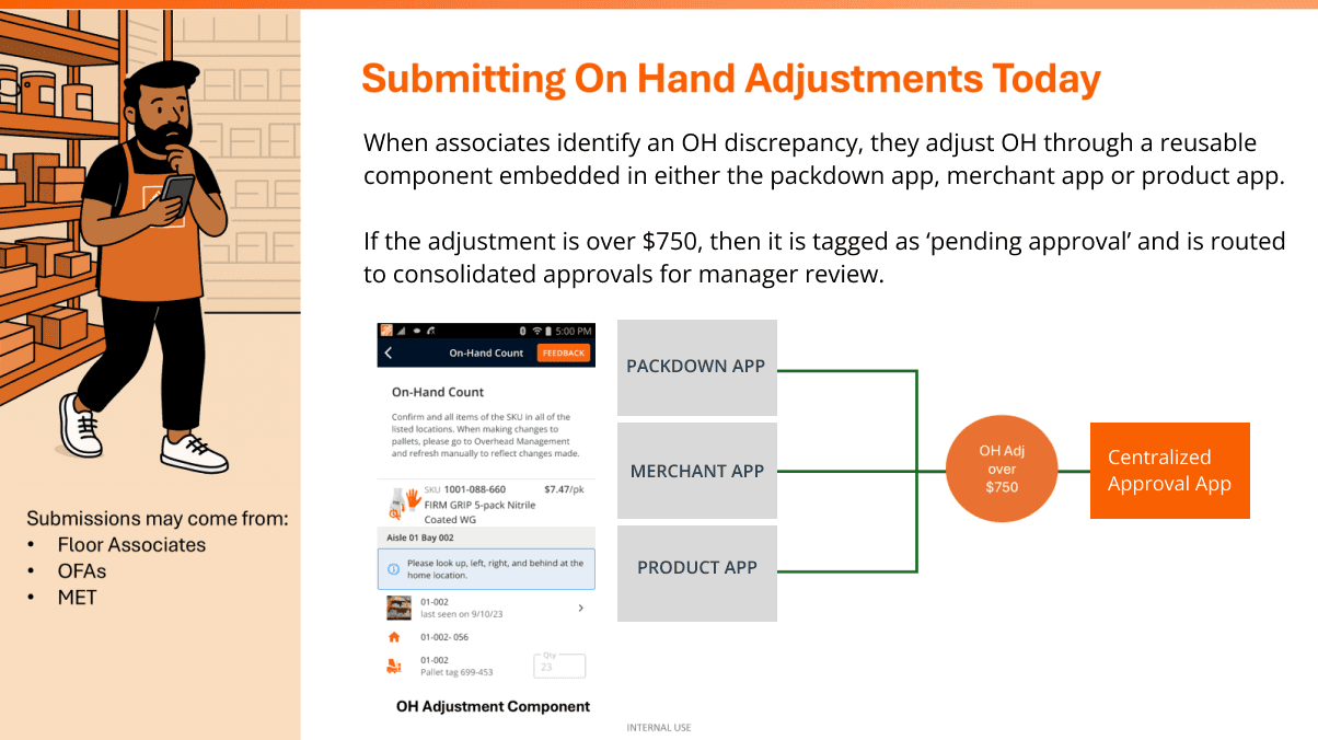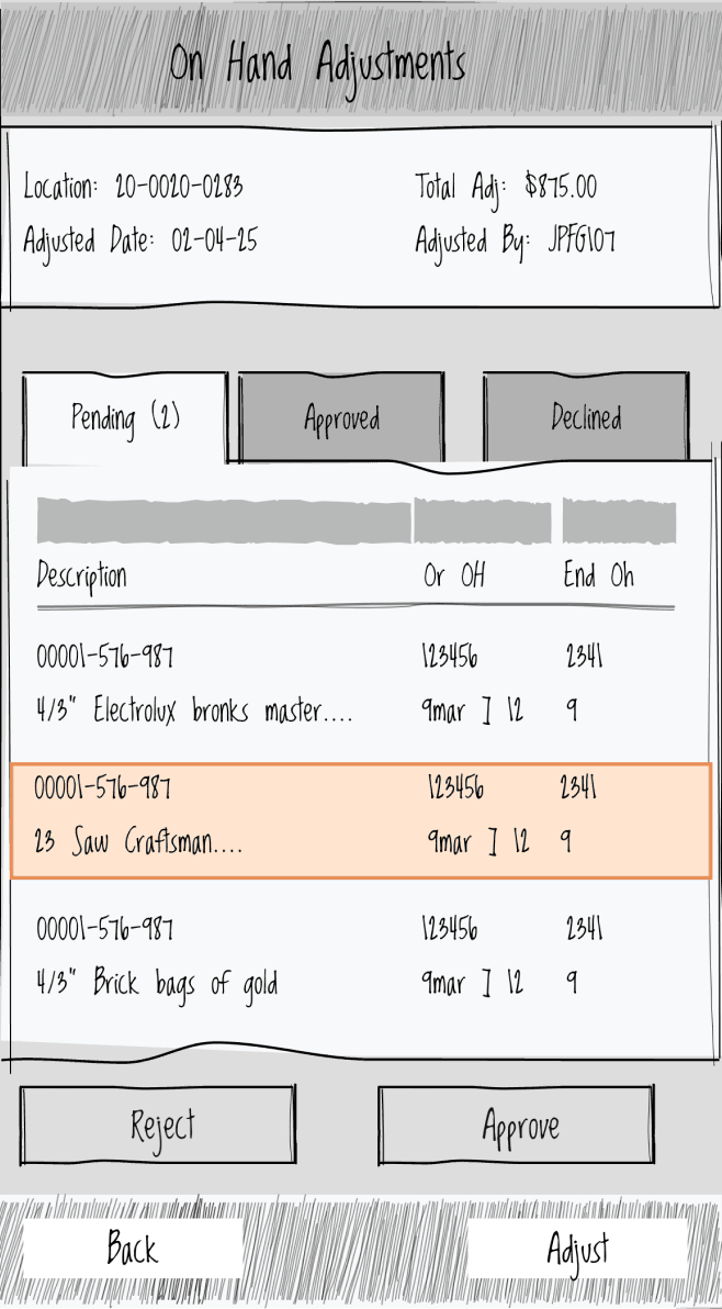 On-hand adjustments over $750 required manager approval